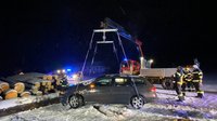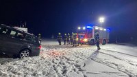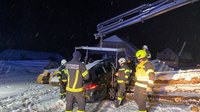 Am Abend des 16.02.2026 wurden wir mit dem Last-Kran zur Unterstützung der FF Vorderweißenbach in die Ortschaft Stumpten alarmiert. Ein PKW war auf der glatten Fahrbahn ins Schleudern geraten, von der Straße abgekommen und in einen neben der Fahrbahn gelagerten Holzstapel geprallt.