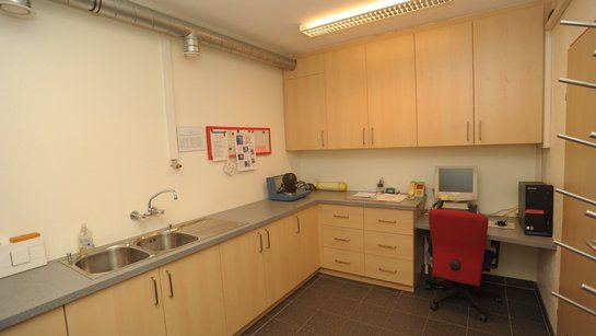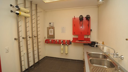 Die Werkstätte des Gerätewartes, der Jugendraum und ein Lager sind im Keller platziert.